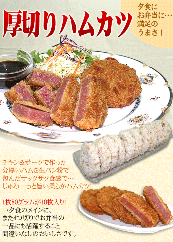 ハムカツ 厚切り(80g×10枚) お弁当 冷凍食品 お弁当 弁当 食品 食材 おかず 惣菜 業務用 家庭用 ご飯のお供 国産